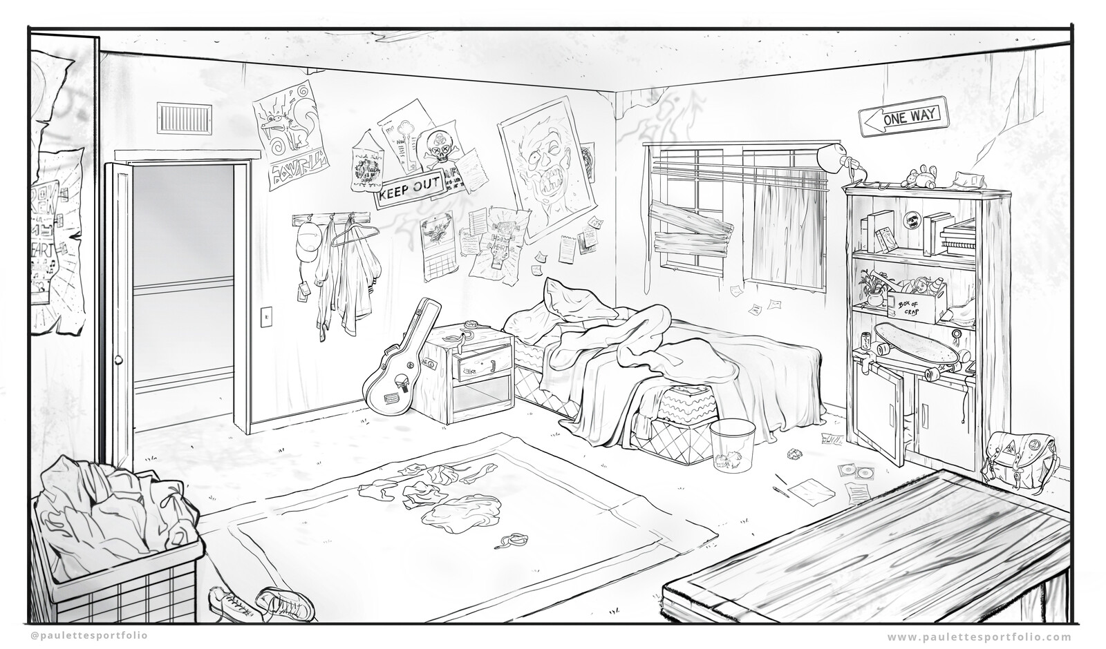 Layout design of a teen room interior. Done in Photoshop.