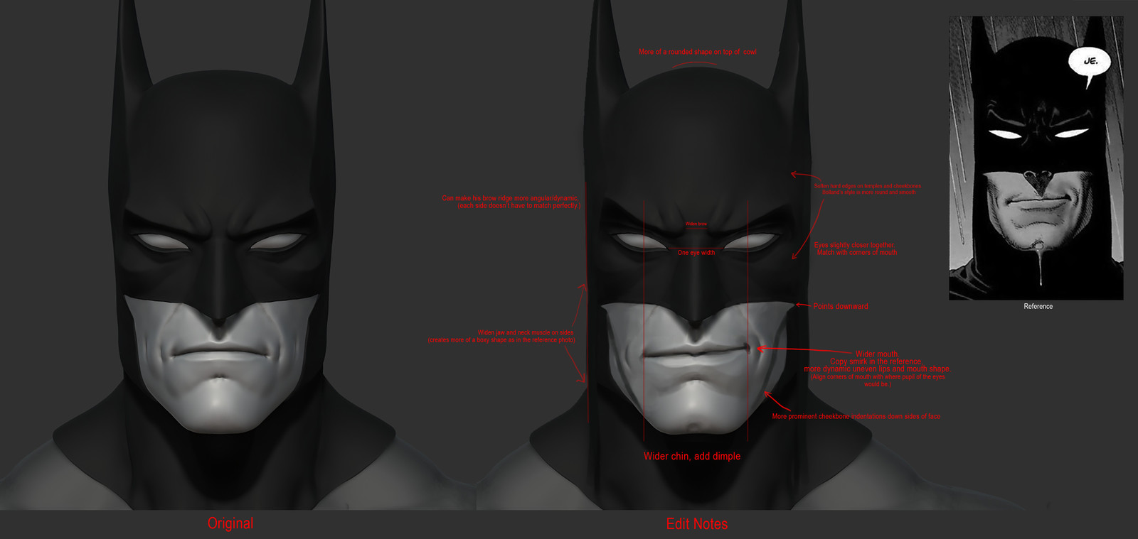 My art direction while working with the sculptor, David Giraud, on the 7 inch Brian Bolland Batman statue. I drew and colored the line art as a starting point for the sculptor. Provided notes, corrections and overall feedback during the development of the statue.