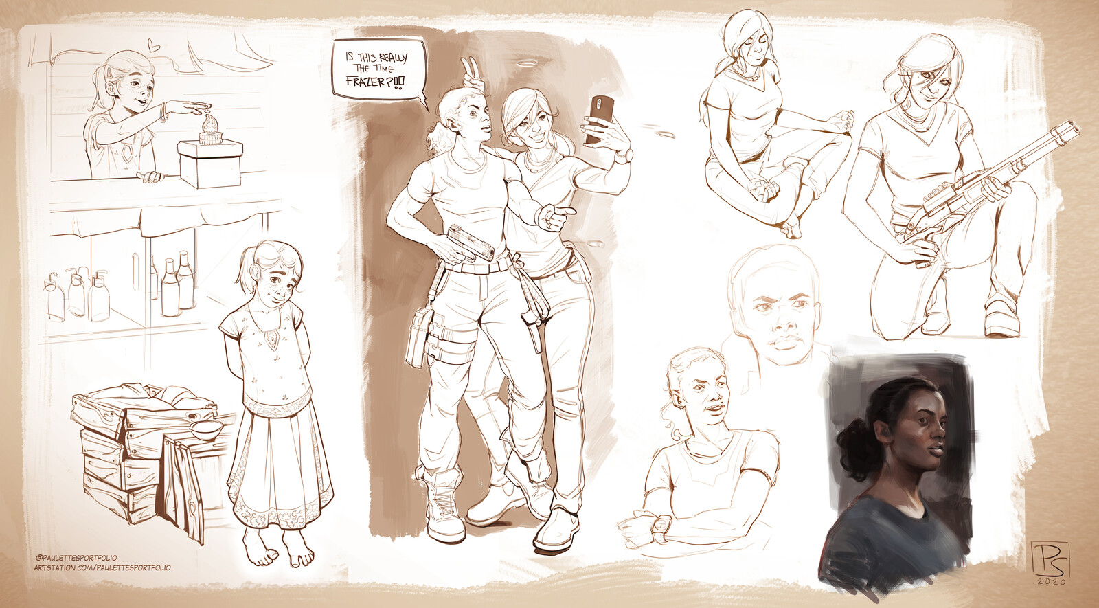 Been replaying a lot of games lately and I forgot how much I loved the Lost Legacy. Here are some sketches of the ladies in the game! Drawn in photoshop.