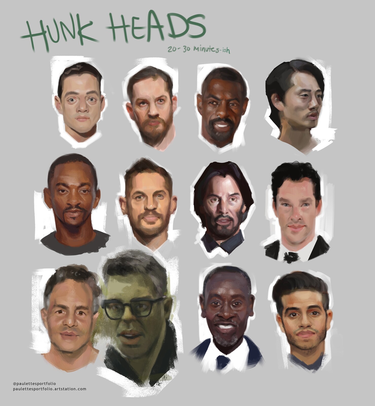 Some quick studies of male heads with a focus on likeness and color rather than detail.